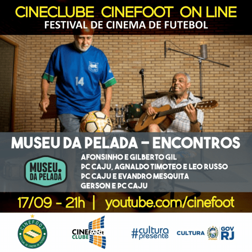 HOJE, quinta-feira, 17/9, às 21h, tem CINECLUBE CINEFOOT ON LINE: “MUSEU DA PELADA-ENCONTROS”.