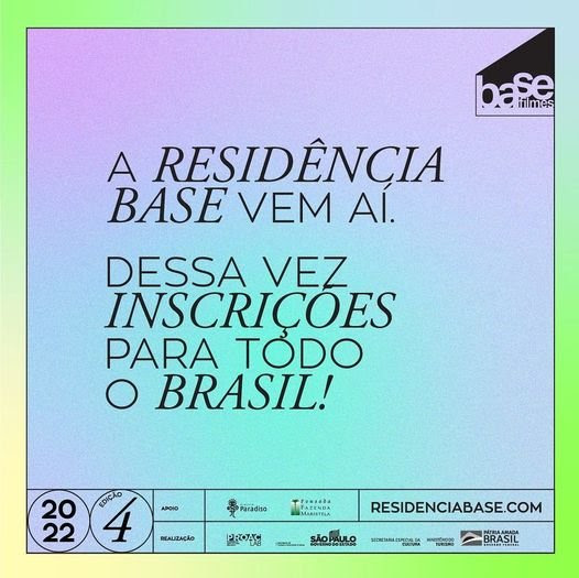Em sua quarta edição, a RESIDÊNCIA BASE, produzida por Esmir Filho, Thereza Menezes, Mariana Bastos e Fernando Sapelli, abre as inscrições para a temporada de 2022. A BASE é uma residência de roteiros para cinema que se propõe a deslocar roteiristas do seu ambiente e levá-los para uma imersão na natureza em diálogo com outros roteiristas e consultoria especializada, além de encontros com grandes nomes da área que compartilham sua experiência.