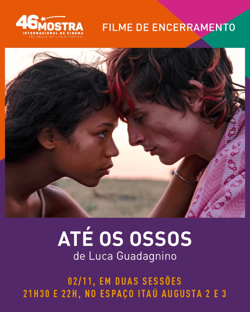 A Mostra Internacional de Cinema de São Paulo anunciou nesta segunda-feira que encerrará sua edição 2022, na próxima quarta, com a exibição de um filme do cineasta italiano Luca Guadagnino: Até os Ossos (“Bones & All”, em inglês), estrelado por Taylor Russell e Timothée Chalamet e baseado no romance homônimo de Camille DeAngelis, de 2015.