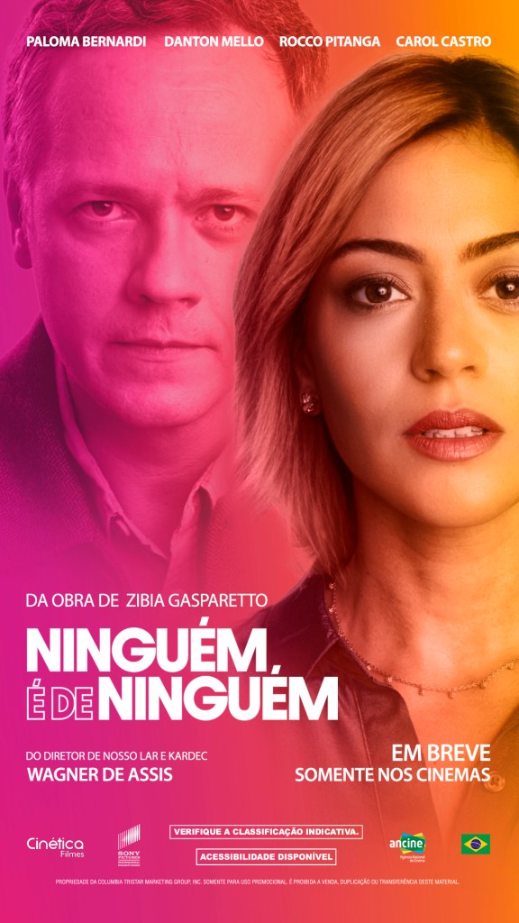 Depois do sucesso de mais de 1 milhão de cópias vendidas, o bestseller “Ninguém É de Ninguém”, de Zíbia Gasparetto, vai ganhar as telonas dos cinemas em uma adaptação homônima. Com estreia marcada para 20 de abril, o longa é um romance, com uma forte carga dramática e pitadas de suspense sobrenatural, que conta as histórias de dois casais: Gabriela (Carol Castro) casada com Roberto (Danton Mello) e Renato (Rocco Pitanga) casado com Gioconda (Paloma Bernardi). As vidas dos quatro se entrelaçam quando Gabriela é chamada para ser associada ao escritório de advocacia de Renato, um advogado bem-sucedido. Com adaptação de roteiro e direção de Wagner de Assis (“Nosso Lar”, “Kardec), o filme é uma história sobre o amor que atravessa os tempos, os ciúmes doentios que destróem relações e projetos de vidas, relacionamentos tóxicos, processos obsessivos, mas também é uma narrativa sobre empoderamento feminino, perdão, recomeço e o olhar espiritual marcante da obra da autora.