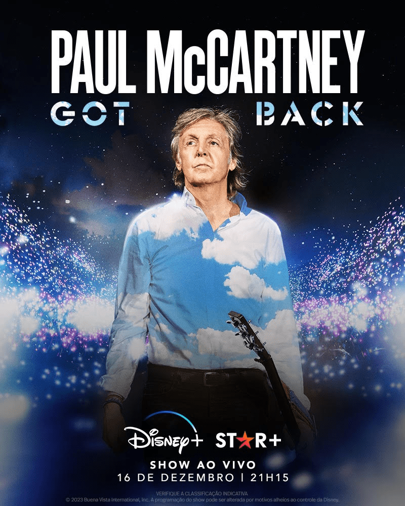 Para os assinantes do Disney+ e do Star+ o Natal chegou mais cedo com um super presente! No dia 16 de dezembro, à partir das 21h15, o último show no Brasil da turnê Got Back, de Paul McCartney, será transmitido ao vivo nas duas plataformas de streaming da Disney, diretamente do Estádio do Maracanã, no Rio de Janeiro. Será uma oportunidade de ver a apresentação em solo brasileiro de um dos maiores astros da música global. Essa será a primeira transmissão do Disney+ e Star+ de um show ao vivo realizado no Brasil.