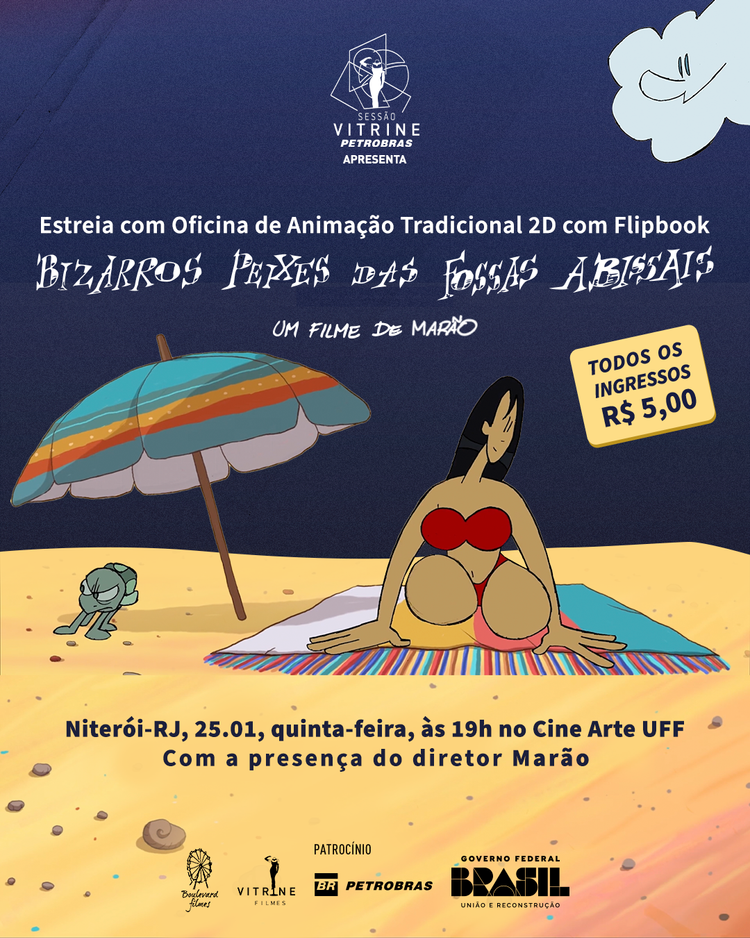 Na quinta-feira, dia 25 de janeiro, às 19 horas, no Cine Arte UFF (R. Miguel de Frias, 9 – Icaraí, Niterói) Marão participará de uma Oficina de Animação Tradicional 2D com Flipbooks. Realizada nas instalações do próprio cinema, a ação será gratuita para os espectadores presentes (tendo que pagar apenas o ingresso da sessão) e será distribuído um kit contendo o flipbook e lápis personalizados para os participantes. Sua duração será em média de 1 hora a 1 hora e meia. O premiado diretor de curtas de animação estreia na direção de longas com BIZARROS PEIXES DAS FOSSAS ABISSAIS, que tem distribuição da Sessão Vitrine Petrobras em parceria com a Boulevard Filmes.