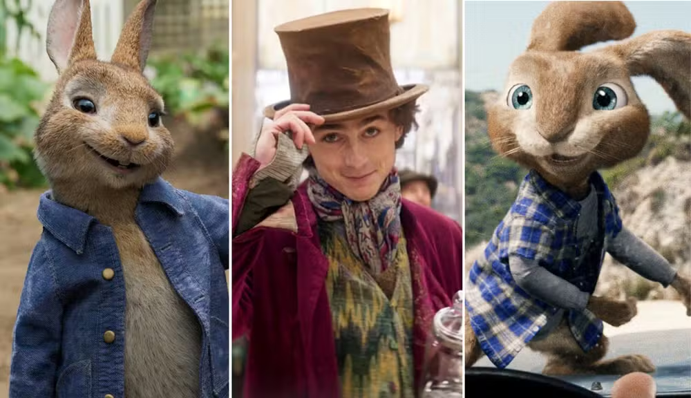 Entre as produções disponíveis em diferentes plataformas, há opções que passam pelo universo dos filmes com coelhos, incluindo títulos populares como “Pedro Coelho”, e outras narrativas que ajudam a entrar no clima da data, como a produção “Wonka”, regada a chocolate.