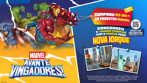 No Brasil, a campanha inclui uma promoção exclusiva no formato “Compre e Concorra”, que oferece aos fãs a chance de viver uma experiência única em Nova Iorque. Ao adquirir R$99,90 em produtos oficiais da Marvel – em qualquer loja física ou digital de todo o Brasil – e cadastrar a nota fiscal no site da campanha, o público concorre a uma viagem em família para a cidade que serve de cenário para diversas histórias dos heróis.