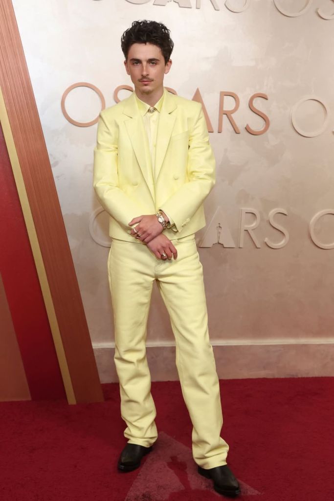 1- Thimotee Chalamet de Um Completo Desconhecido veste Givenchy, um lindo smoking amarelo.