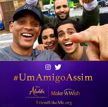 O Desafio #UmAmigoAssim faz parte de uma campanha global de marketing apoiada pela Make-A-Wish®, Disney e Will Smith. O ator, que interpreta o gênio que realiza sonhos em “Aladdin”, incentivará fãs e celebridades para que participem da campanha e ajudem a demonstrar ao mundo que desejar é poder.