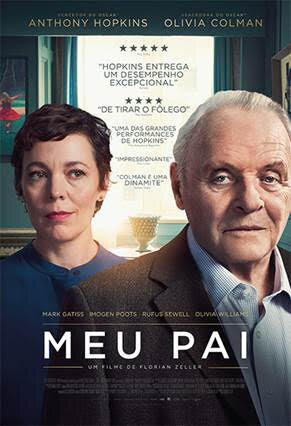 Indicado ao Oscar em seis categorias: Melhor Filme, Melhor Ator para Anthony Hopkins, Melhor Atriz Coadjuvante para Olivia Colman, Melhor Roteiro Adaptado para Christopher Hampton, Melhor Edição e Melhor Design de Produção, MEU PAI, dirigido pelo dramaturgo francês Florian Zeller, tem ao centro a relação entre Anthony e sua filha, Anne. Ele, aos 81 anos, vive sozinho em um apartamento em Londres, e recusa a ajuda de enfermeiros e cuidadores que ela tenta impor. Quando ela resolve se mudar para Paris com seu companheiro, surge um impasse, como o pai ficará completamente sozinho? Nesse mesmo, momento, o homem começa a duvidar se ela realmente o ama e da sua própria sanidade.