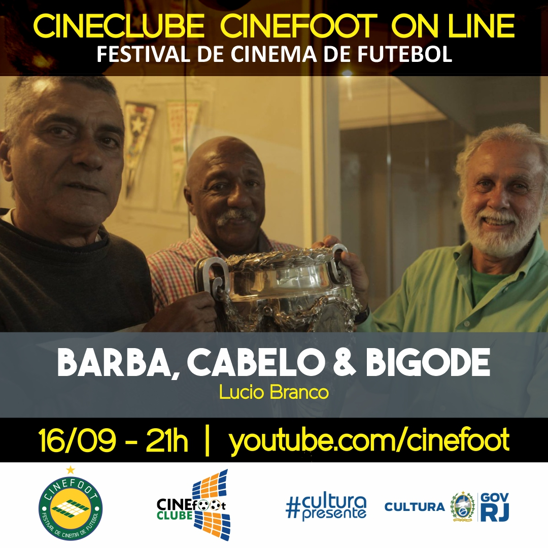 HOJE, quarta-feira, 16/9, às 21h, tem CINECLUBE CINEFOOT ON LINE: “BARBA, CABELO & BIGODE”, direção de Lucio Branco, com foco num trio inigualável de craques dentro e fora do campo.