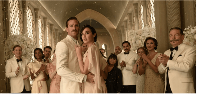 Armie Hammer e Gal Gadot como os personagens Simon Doyle e Linnet Ridgeway