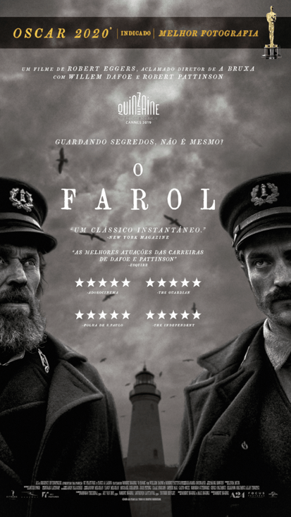 O FAROL, dirigido por Robert Eggers, foi indicado ao Oscar na categoria de Melhor Fotografia (Jarin Blashke) e continua em cartaz nos cinemas brasileiros, onde já foi visto por mais de 50.000 espectadores em três semanas de exibição. Esta semana o filme amplia ainda mais seu circuito e estreia nas cidades de Londrina, Maceió, Petrópolis, Rio Grande e Volta Redonda.